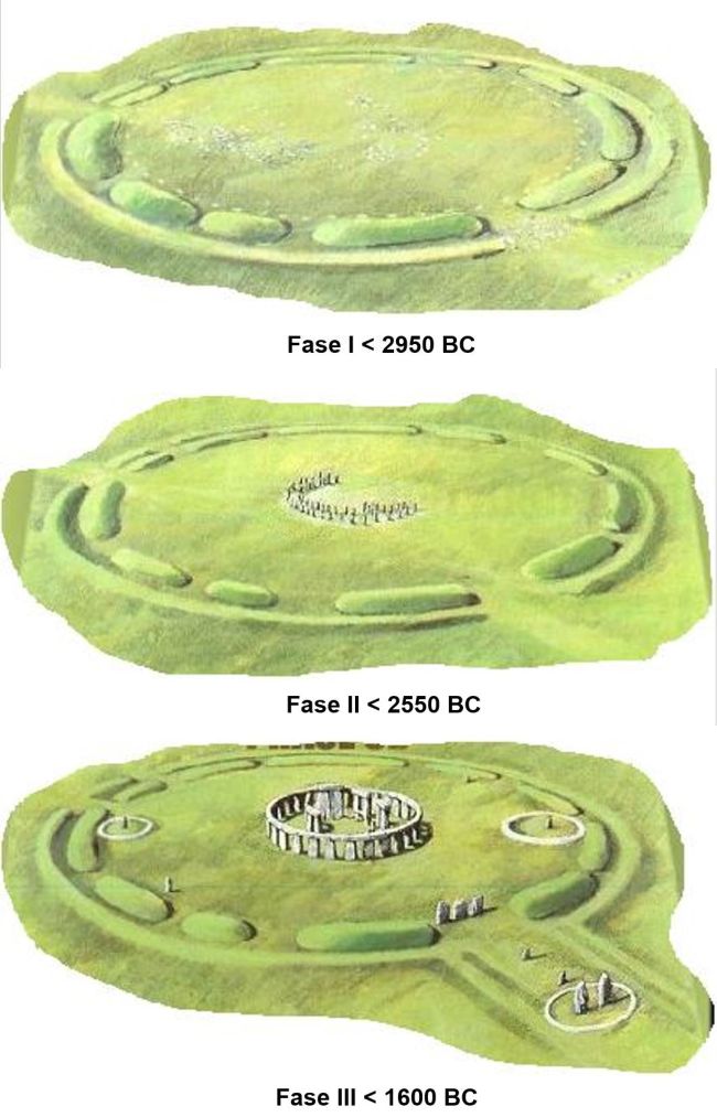 In de onderstaande afbeelding bovenaan de waarschijnlijke beginfase van Stonehenge, daaronder een aantal varianten.