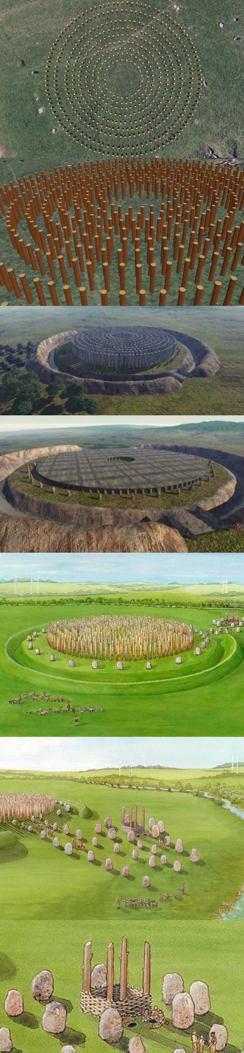 We gaan dus HIER verder met de Durrington Walls, maar eerst nog even deze afbeeldingen met conclusie over de hamvraag van het waarom van o.m. al die Woodhenge houten palen, citaat uit dit verhaal: