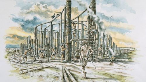 De native Americans bouwden zelfs rond het jaar 1000, dus slechts 1500 jaar geleden, nog Woodhenges met een diameter van ca 125 meter, waarvoor 48 rood geschilderde ceder palen werden gebruikt.